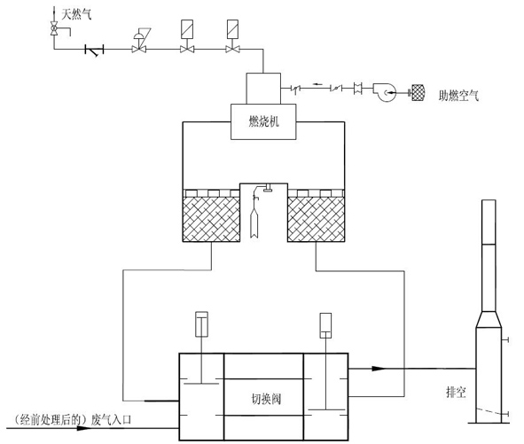 其原理是把有機(jī)廢氣加熱到760攝氏度(具體需要看成分)以上,使廢氣中的VOC在氧化分解成二氧化碳和水。氧化產(chǎn)生的高溫氣體流經(jīng)特制的陶瓷蓄熱體,使陶瓷體升溫而蓄熱,此蓄熱用于預(yù)熱后續(xù)進(jìn)入的有機(jī)廢氣。從而節(jié)省廢氣升溫的燃料消耗。陶瓷蓄熱室應(yīng)分成兩個(gè)(含兩個(gè))以上,每個(gè)蓄熱室依次經(jīng)歷蓄熱-放熱-清掃等程序,周而復(fù)始,連續(xù)工作。蓄熱室放熱后應(yīng)立即引入適量潔凈空氣對(duì)該蓄熱室進(jìn)行清掃(以保證VOC去除率在98%以上),只有待清掃完成后才能進(jìn)入蓄熱程序。否則殘留的VOCS隨煙氣排放到煙囪從而降低處理效率。