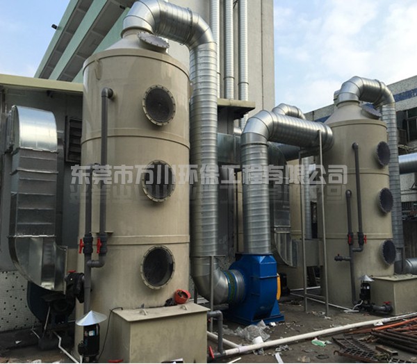 噴淋塔也叫水淋塔,是以水為介質(zhì)處理粉塵。含塵氣體從塔體下方進氣口沿切向進入噴淋塔,在風(fēng)機的作用下,迅速充滿進氣段空間,然后塔頂位置的噴淋頭向下噴水,水與含塵廢氣接觸,使得空氣和粉塵分離,達到除塵的效果。噴淋塔具有結(jié)構(gòu)簡單、造價低、占地面積小、凈化效率高等優(yōu)點,能夠處理高溫、高濕的氣流,將著火、爆炸的可能減至最低。經(jīng)治理后,污染物排放達到標(biāo)準(zhǔn):執(zhí)行《廣東省大氣污染物排放標(biāo)準(zhǔn)》(DB44/27-2001)中第二時段一級標(biāo)準(zhǔn)。