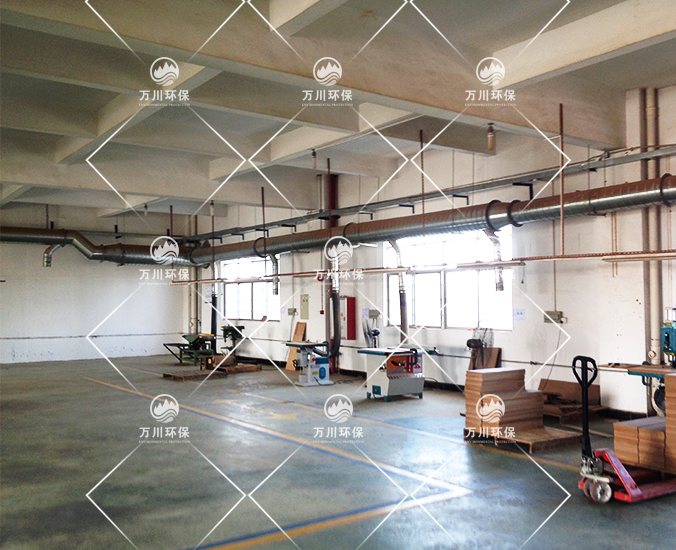 在木工車間開料、刨花、裁剪工序中會產(chǎn)生大量粉塵,為此正碩公司負責人向本公司采購一套中央系統(tǒng)系統(tǒng)。東莞市萬川環(huán)保工程有限公司本著如下設(shè)計原則: