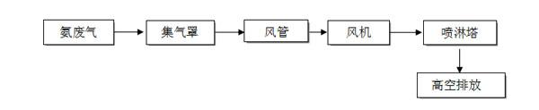 根據廠方提供的資料及現(xiàn)場勘察的情況,我司可以確定該廠的廢氣為“氨氣”。根據該廢氣的性質,萬川環(huán)保決定為該廠選定設備為--噴淋塔。(工藝簡圖如下)